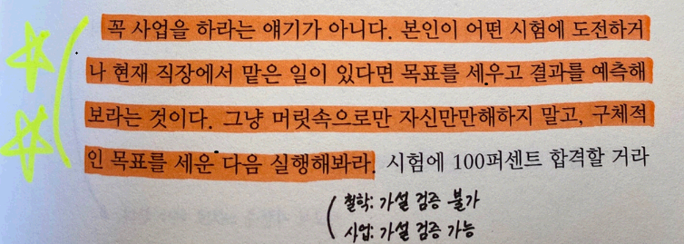 - 삶을 극적으로 변화시키려면 무조건 결단 내린 것을 실행하고 반복적으로 실행해야 관성이 생기게 된다.